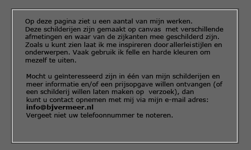 welkom op de webpagina galery van bjvermeer bjvermeer.nl, bjvermeer acryl, schilderijen, acryl, schilderen, acrylverf, exposeren, creativiteit werken, canvas,